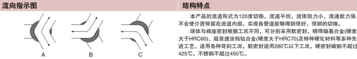 本產品的流道形式為120°切換,流道平坦、流體阻力(lì)小(xiǎo)、流通(tōng)能力強,不會使介質停留在(zài)流道內(nèi)部,實現各管(guǎn)道能夠得(dé)到很好的、很順的切換。