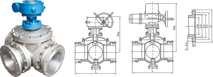 上裝式蝸輪三通球閥(fá)一可分為L形和T形(xíng)。L形心(044F)三通球閱用於介質流向的切換,能使相互垂直的兩個通道連接;T形(O45F)三通球門用於介質分(fèn)流、合流及流向切換。T形三通(tōng)可以使三個通道相互連通或使其中的兩個通道連通。三通球門一般采用兩閥座結構,亦可(kě)根據用戶要求采(cǎi)用四閥座結構。