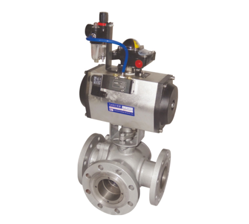 氣動三通球閥可分為L形氣動三通球閥和T形氣動(dòng)三通球閥,L形(Q44F)三通(tōng)球閥用於介質流向的切換(huàn),能使相互垂直的兩個通道連接;T形(Q45F)三(sān)通(tōng)球閥用於介質分流(liú)、合流及流(liú)向切換。T形三通可以使三個通道相互連通或使其中的兩個通道連通。三通球閥一般采(cǎi)用兩閥座結構,亦可根據用戶要求采用四閥(fá)座結構。